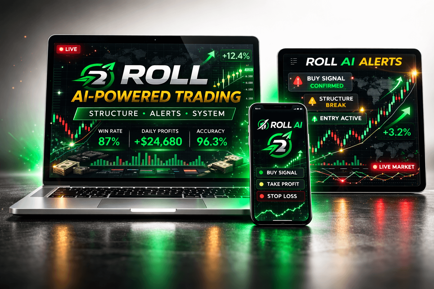 Private access to Roll’s AI-powered trading structure, alerts, and system — built for consistency and disciplined execution.